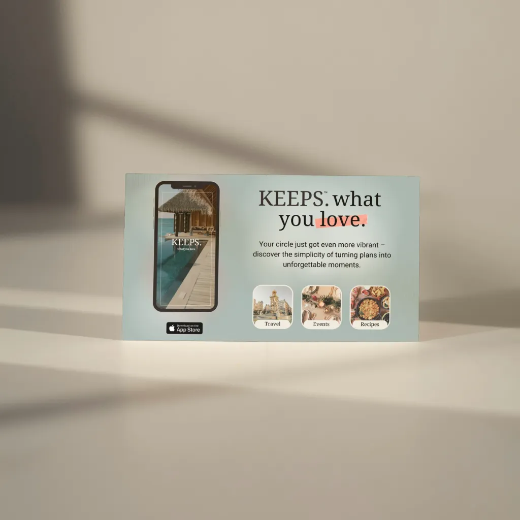 We developed a strategic branding and naming process for KEEPS. to appeal to a diverse range of women, from their 20s to 60s, with incomes between $75k and $400k. By conducting thorough research and competitive analysis, we crafted a brand that offers elevated prestige while being accessible, positioning KEEPS. distinctively in the market.